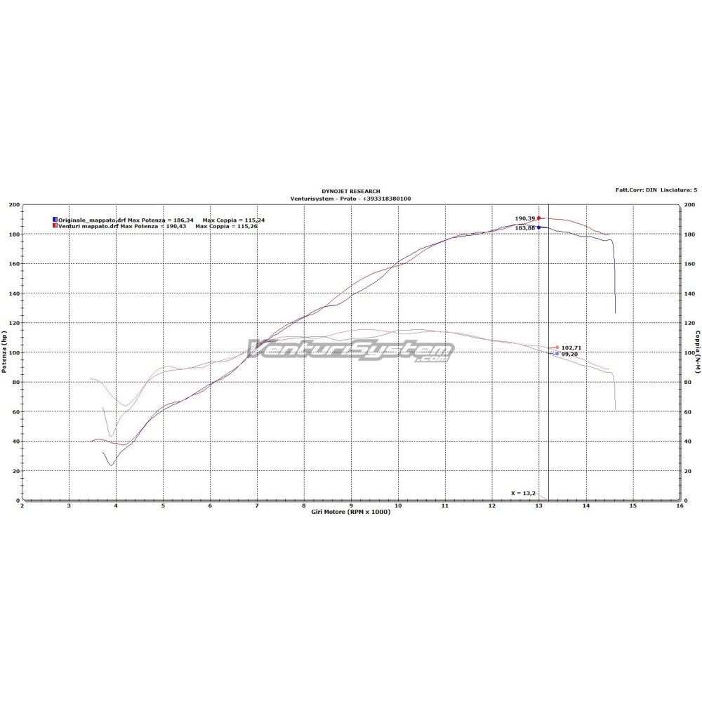 Blue line: Original mapped kit (full Arrow exhaust, BMC filter, Yoshimura ECU).